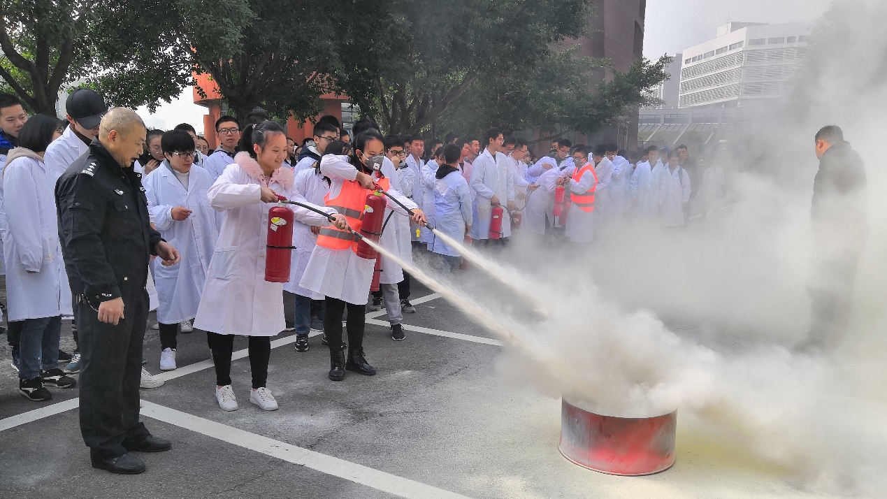 参与本次消防演戏的同学们身着实验服,在演习过程中服从指导、统一组织、统一行动。在实验楼警铃拉响之后,同学们迅速有序撤出实验楼;灭火环节,大家认真观看保卫处老师的现场指导,积极踊跃参与模拟灭火展现出了较高的安全意识和专业素养。