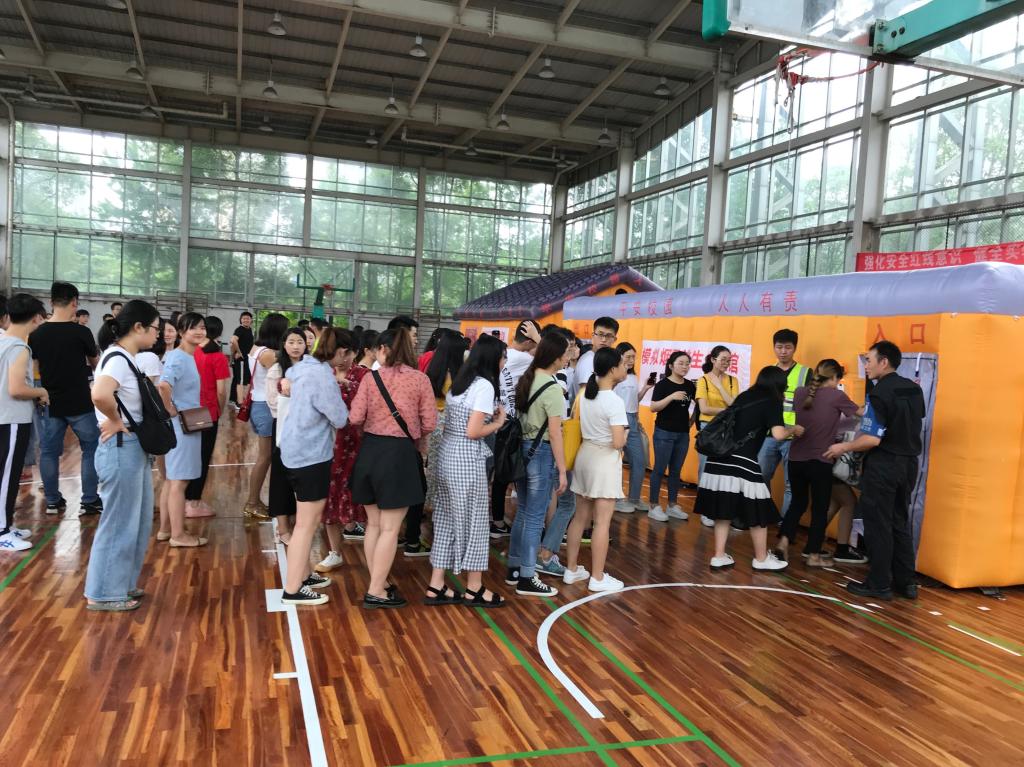 2019621日下午,足球投注平台-足球投注app 举办“强化安全红线意识、健全实验室安全体系”的主题活动,在校车站旁的室内篮球场进行安全培训与应急演练。足球投注平台 研一、研二、在读博士研究生以及足球投注平台 全体教师参加演习,保卫处消防交通科、安教科进行实地培训。