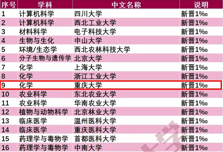 喜报!重庆大学 “化学”学科进入ESI学科影响力全球前1‰