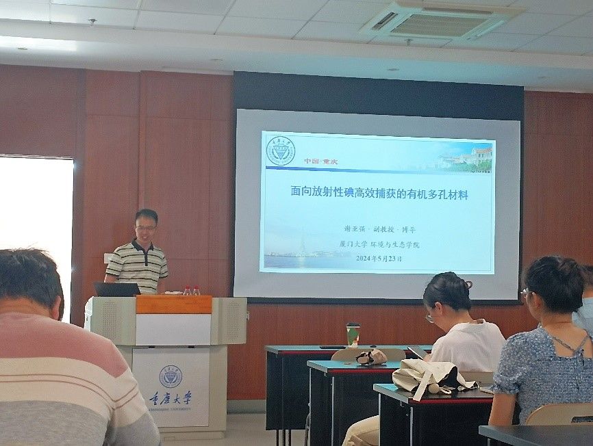2024年5月23日上午,在重庆大学虎溪校区理科楼LA107室,厦门大学谢亚强副教授应邀开展了主题为“面向放射性碘高效捕获的有机多孔材料”的学术讲座。本次讲座由足球投注平台