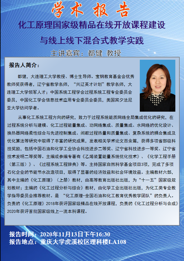 化工原理国家级精品在线开放课程建设与线上线下混合式教学实践 都健教授