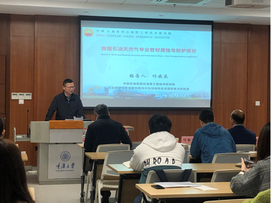 做了题为“我国石油天然气专业管材腐蚀与防护现状”的学术报告。
