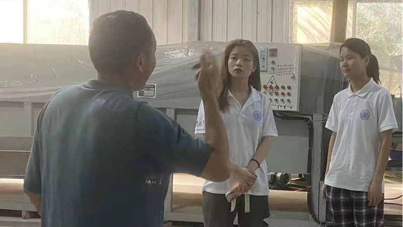 实践团来到重庆市一哲茶业有限责任公司,现场体验,深入学习永川秀芽加工工艺:晾晒、杀青、揉捻、二次杀青、复揉、理茶、烘干、包装等。